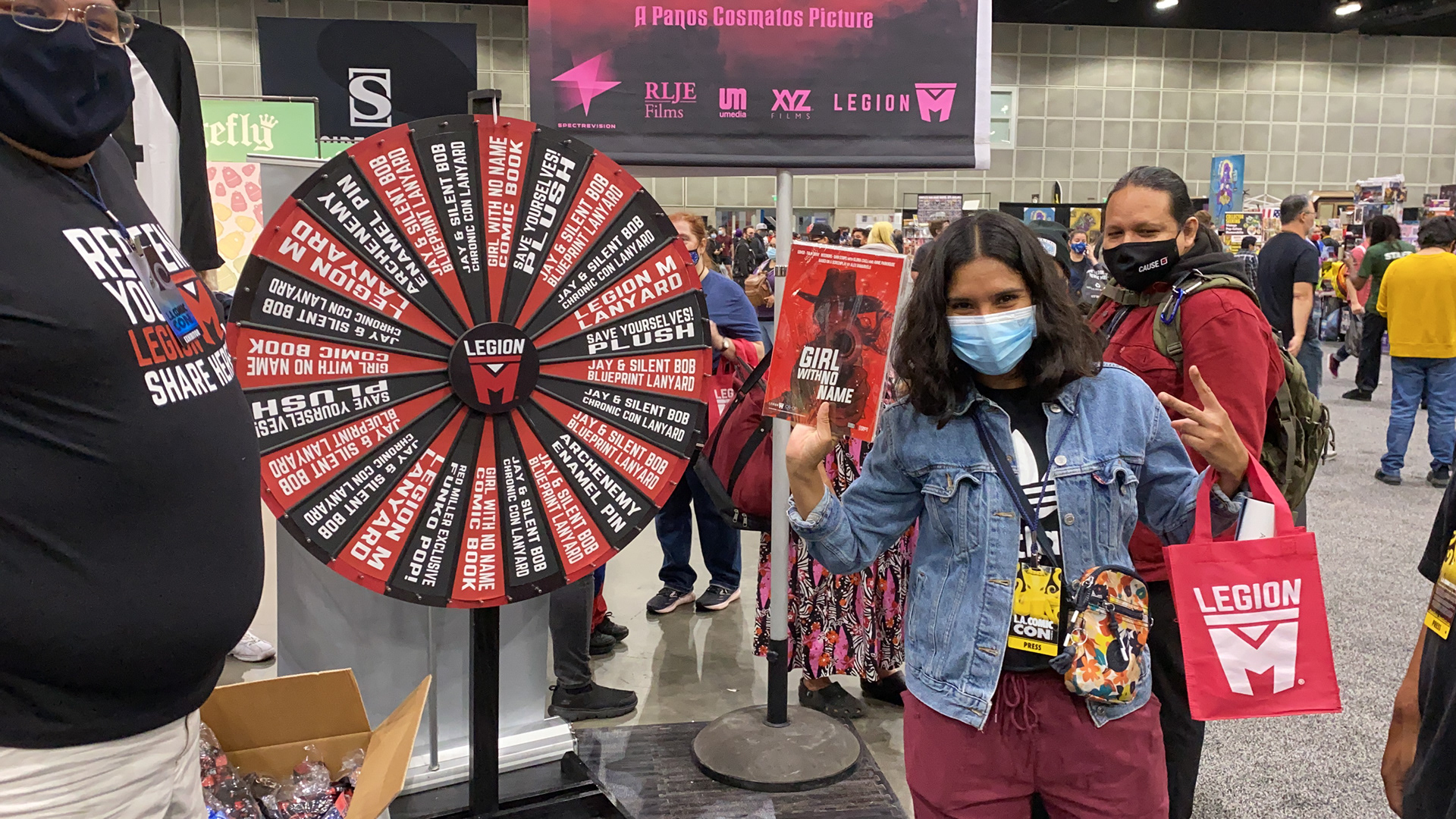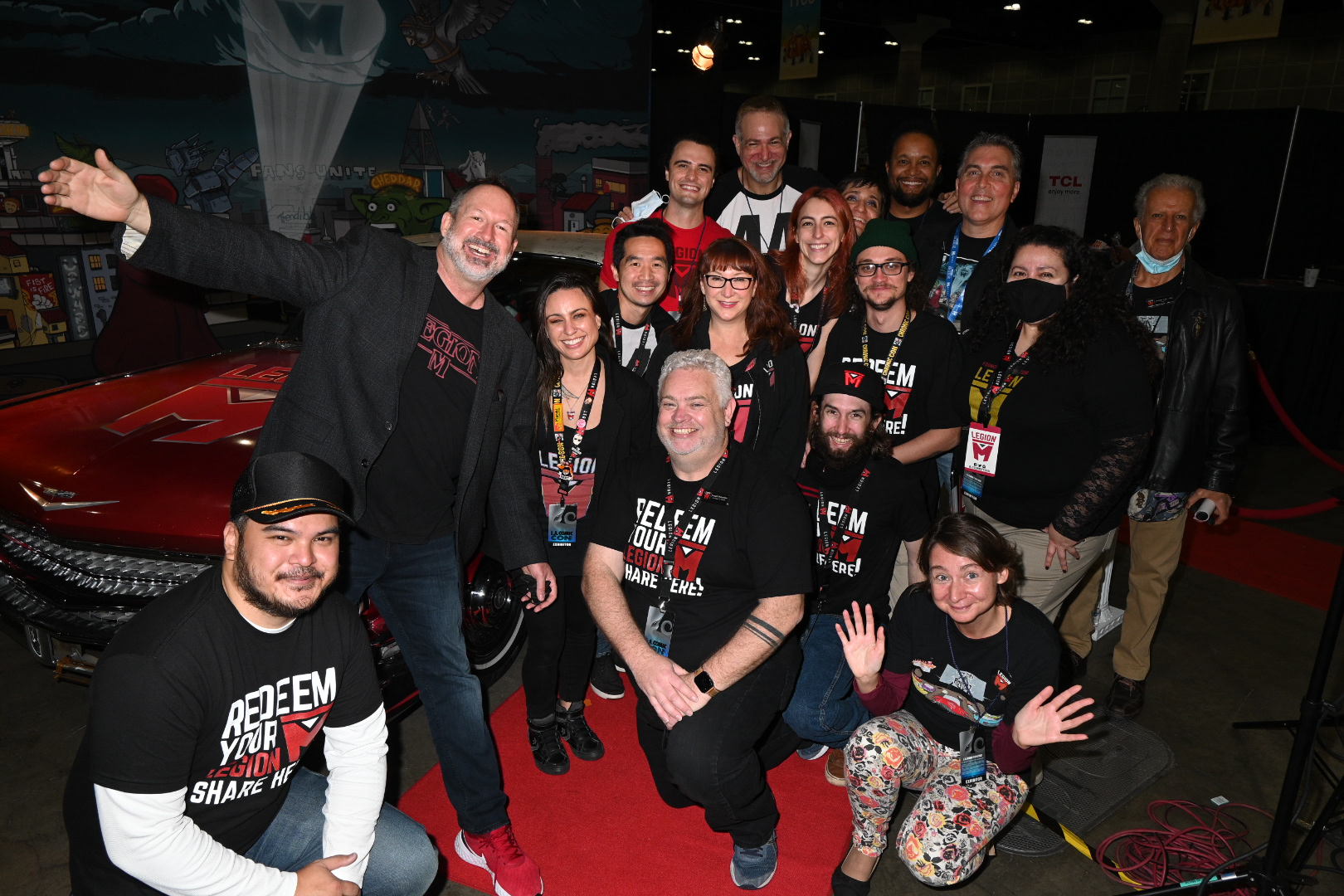 As we emerged from the pandemic, Legion M was offered the opportunity to host a 90'x30' booth on "Main Street" at LACC, an amazing opportunity for exposure. I produced a photo op with our Legion M Caddy, overlooking an illustrated LA skyline (and featuringĀ Easter Eggs from Legion M films & shows) and helped design the layout of the rest of the experience. Guests were able to walk the red carpet and take a photo with a real Emmy Award which our founders won for Innovation in Television. Other areas of the booth included signings with Bruce Boxleitner ("Tron", "Babylon 5"), Rich Ting ("Supergirl," "The Man In The High Castle"), and Warren Skeels the director of our film "The Man In The White Van." We also had an interview space for media, a seating area where people could watch the trailers from our films, a mini booth featuring Rubber Larry and his hyper-realistic masks, a swag station, a prize wheel, andĀ a merch booth. Finally, all attendees of LACC were eligible for one free share of stock in Legion M, so various banners, standees, and even the staff t-shirts featured information for how to redeem those shares.